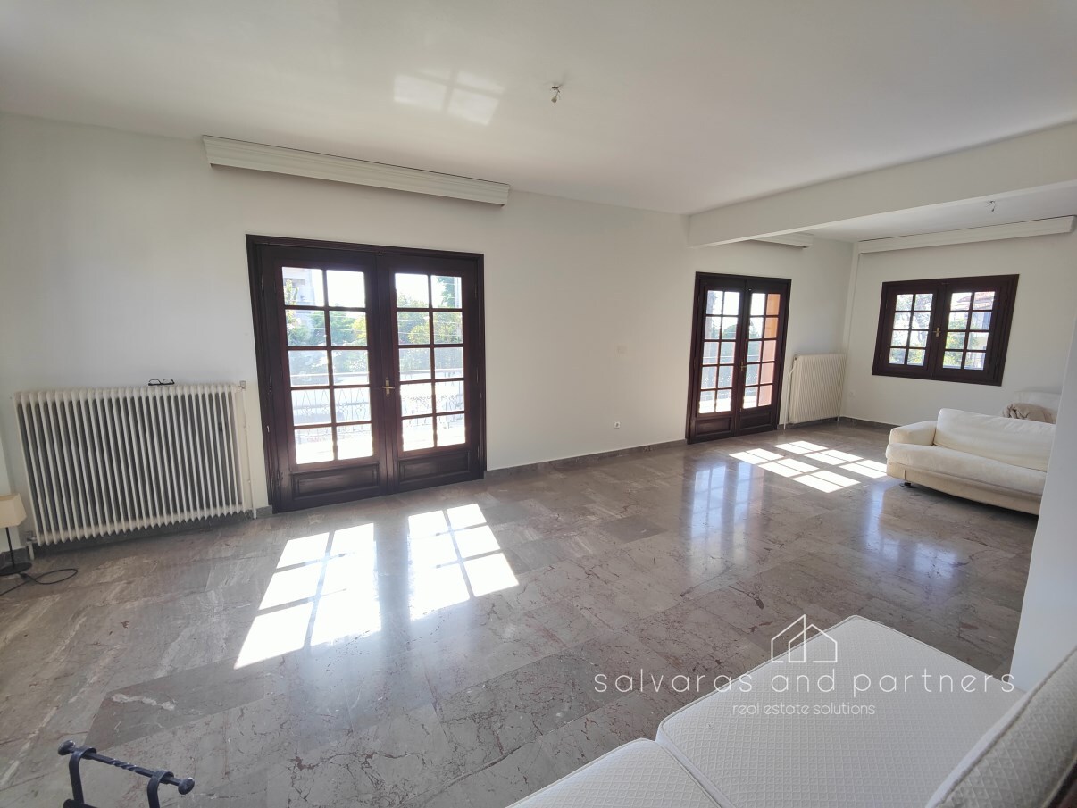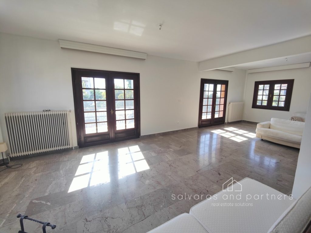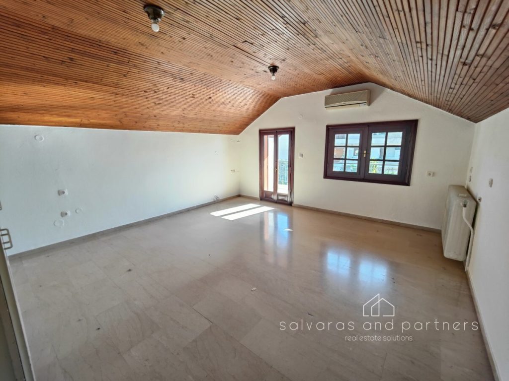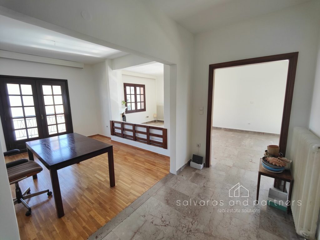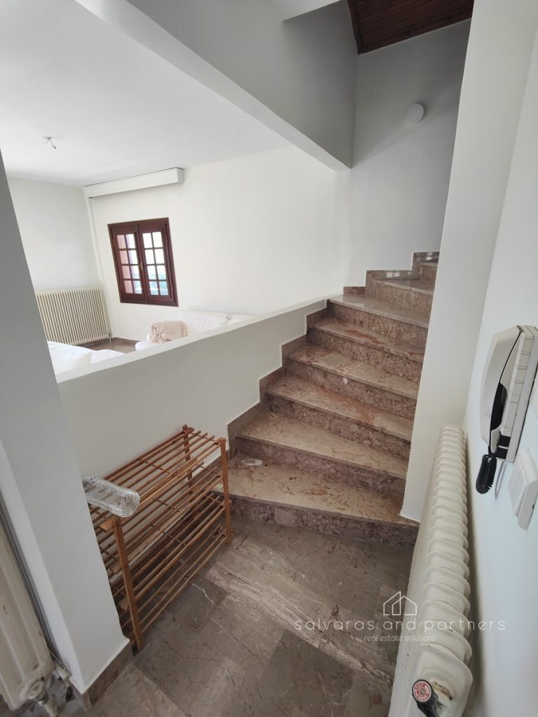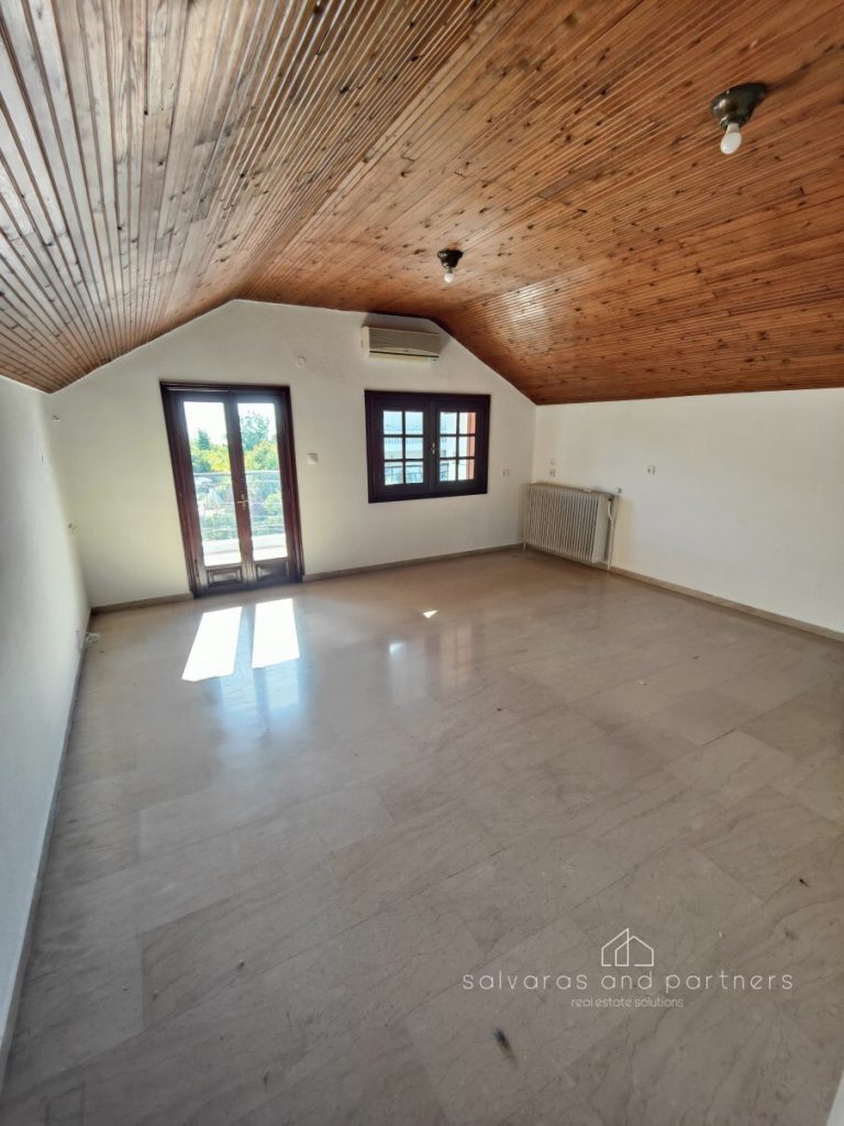 Διαμέρισμα 2ου ορόφου με σοφίτα , διατίθεται προς ενοικίαση στο Πανόραμα στον οικισμό του Νόμου 751. Καλύπτει συνολικά 160 τ.μ. κατασκευής του 1987 , με 3 δωμάτια και έναν χώρο γραφείου. Αναλυτικότερα στο 1ο επίπεδο κυριαρχεί το καθιστικό. Με μεγάλα ανοίγματα, ευρύχωρο, ευχάριστο, ηλιόλουστο, με δάπεδο επενδεδυμένο από μάρμαρο και με τζάκι. Αποτελεί το κέντρο δράσης για όλη την οικογένεια. Ενας χώρος γραφείου με άμεση επικοινωνία με το σαλόνι είναι εξίσου ευχάριστος και λειτουργικός. Στο ίδιο όροφο υπάρχει ένα δωμάτιο , το μπάνιο και η κουζίνα η οποία είναι ανεξάρτητη και μπορεί να φιλοξενήσει μία καθημερινή τραπεζαρία. Τα πίσω μπαλκόνια είναι μεγαλύτερα από τα μπροστά και προσφέρουν καλύτερη θέα προς το χωριό του Πανοράματος. Ανεβαίνοντας στην σοφίτα συναντάμε 2 μεγάλα υπνοδωμάτια , με μία ντουλάπα και ένα ακόμη μπάνιο. Εδώ υπάρχουν και2 αποθηκευτικοί χώροι , οι οποίοι είναι ιδιαίτερα λειτουργικοί και χρήσιμοι. Η θέρμανση είναι ατομική πετρελαίου. Ένα ιδανικό καταφύγιο για όσους ψάχνουν την άνεση και τους μεγάλους χώρους .Το διαμέρισμα βρίσκεται σε ήσυχη περιοχή μία ανάσα από σχολεία , συγκοινωνία και αθλοπαιδιές. Τιμή 850€