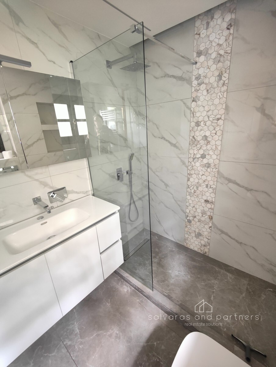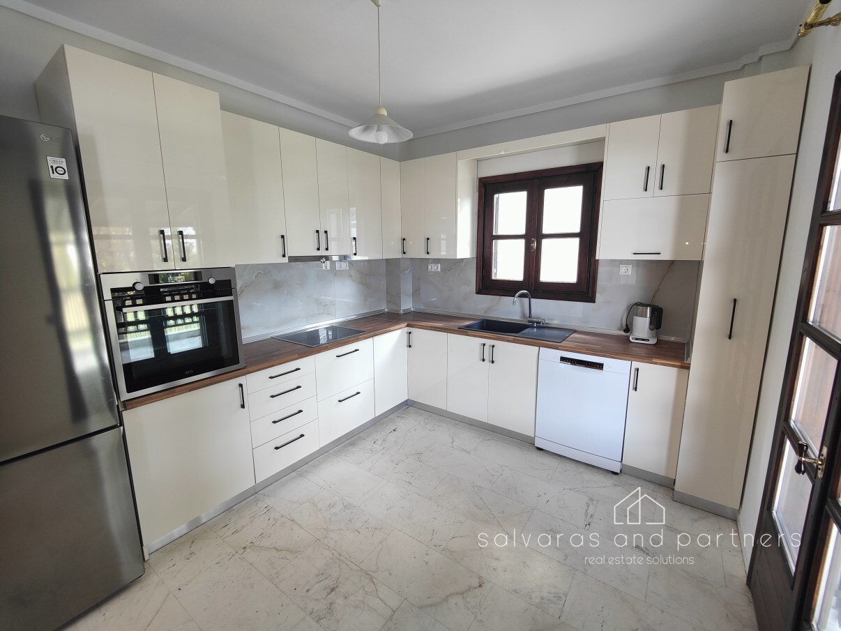 Μονοκατοικία, διατίθεται προς ενοικίαση στο Πανόραμα στον οικισμό του Νόμου 751. Σε συγκρότημα 3 μονοκατοικιών. Αναπτύσσεται σε 3 επίπεδα, καλύπτει συνολικά 200 τ.μ. και φιλοξενεί 4 υπνοδωμάτια. Αναλυτικότερα στο 1ο επίπεδο δεσπόζει το σαλόνι με το τζάκι. Τα λευκά μαρμάρινα εξαιρετικής ποιότητας με τα οποία είναι επενδεδυμένο το δάπεδο κερδίζουν τις εντυπώσεις. Η κουζίνα στο ίδιο επίπεδο , ανεξάρτητη και με πολλούς αποθηκευτικούς χώρους ανακαινίστηκε φέτος. Με εντοιχιζόμενες ηλεκτρικές συσκευές τελευταίας τεχνολογίας , προσφέρει εργονομία και καλύπτει τις ανάγκες και της πιο απαιτητικής νοικοκυράς. Οι μεγάλες περιμετρικές μπαλκονόπορτες του καθιστικού μας οδηγούν σε ένα μεγάλο μπαλκόνι 50 τ.μ. , το οποίο χαρίζει πανοραμική θέα και υπόσχεται στιγμές χαλάρωσης. Ανεβαίνοντας στη ζώνη νυχτός συναντάμε 3 υπνδωμάτια με ένα μπάνιο, 2 κλιματιστικά, και 2 ντουλάπες. Εδώ τα μπαλκόνια είναι μικρότερα αλλά η θέα καλύτερη. Στον ημιυπόγειο χώρο θα συναντήσουμε ένα δεύτερο καθιστικό με τζάκι. Είναι ευχάριστο και λειτουργικό. Στο ίδιο επίπεδο υπάρχουν ακόμη ένα δωμάτιο, ένα μπάνιο, ένα wc και μία αποθήκη. Αυτό το επίπεδο διαχωρίζεται με την υπόλοιπη οικία με μία εσωτερική πόρτα , επομένως ευκολα μπορεί κάποιος να αυτονομηθεί. Ο κήπος 90 τ.μ. αποκλειστικής χρήσης είναι ιδανικός αλλά και ασφαλής για τους μικρούς μας φίλους , αλλά και για συγκεντρώσεις των μεγάλων. Η θέρμανση είναι ατομική πετρελαίου, η πόρτα θωρακισμένη, υπάρχουν 4 καινούργια κλιματιστικά. Πρόκειται για ένα ιδανικό καταφύγιο για όσους επιζητούν την άνεση , την ησυχία, τον καθαρό αέρα, την λειτουργικότητα και την πανοραμική θέα . Τιμή 1.300€